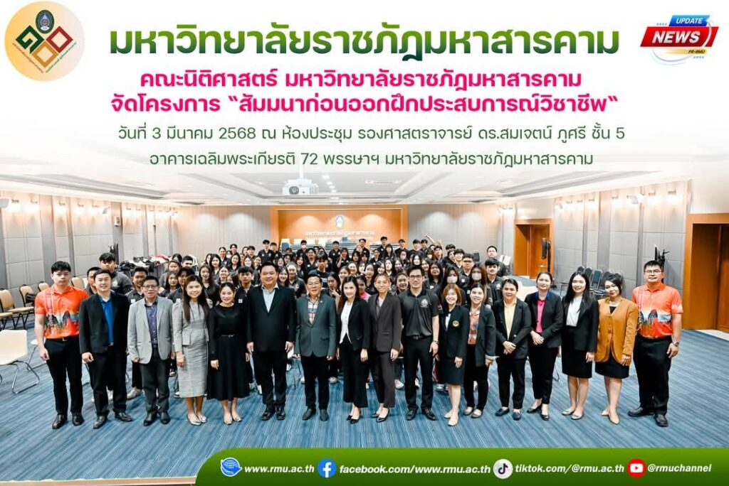 คณะนิติศาสตร์ มหาวิทยาลัยราชภัฏมหาสารคาม จัดโครงการ “สัมมนาก่อนออกฝึกประสบการณ์วิชาชีพ“
